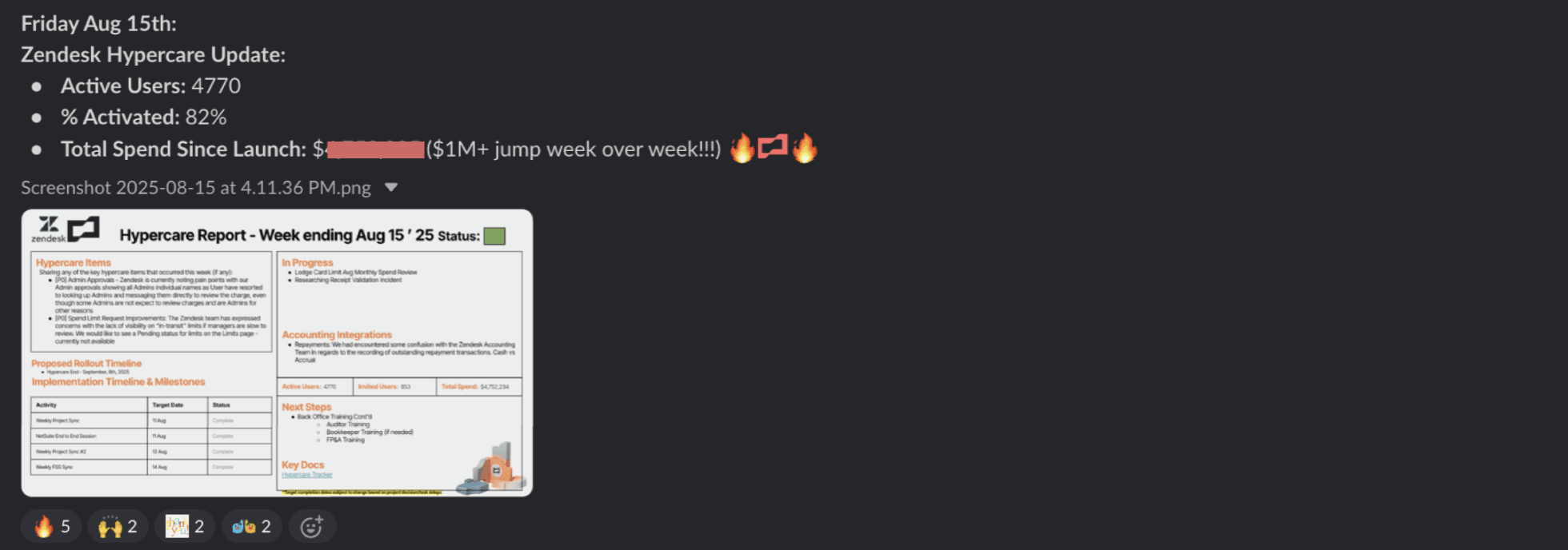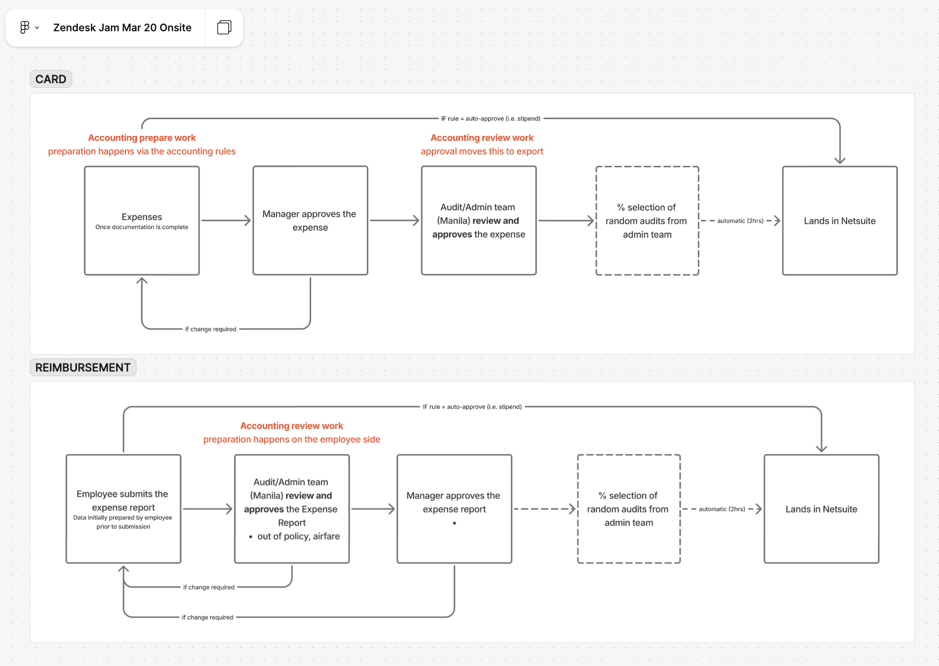 Zendesk, with 7k employees, was stuck at a 10% pilot after an 18-month sales cycle. They had never once been able to complete a month-end close on Brex. All stakes were on the table as me, the VP of product and design, and our Zendesk POCs hashed out a co-design session, as a wedge into making sure we built the right thing for the upcoming release cycle.