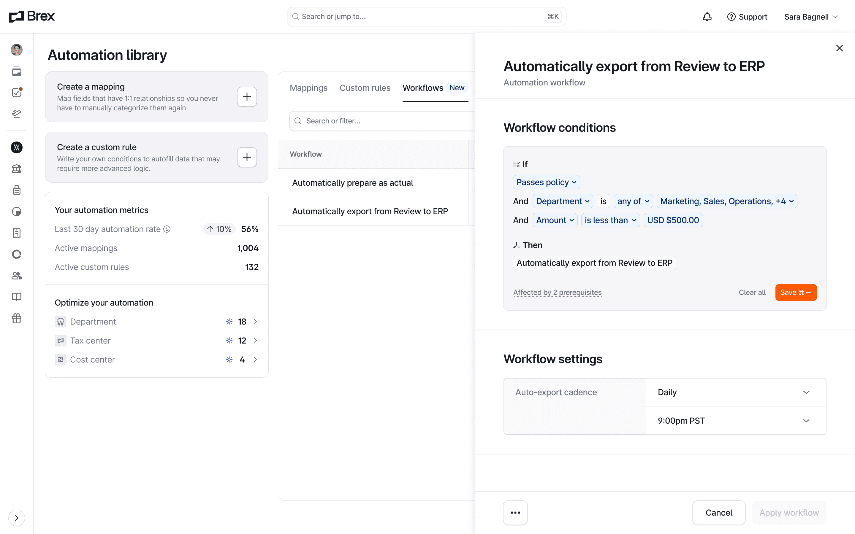Map accounting data during onboarding (for example, you’d want all ‘AWS’ merchant spending to push to your ERP’s ‘AWS’ line items).