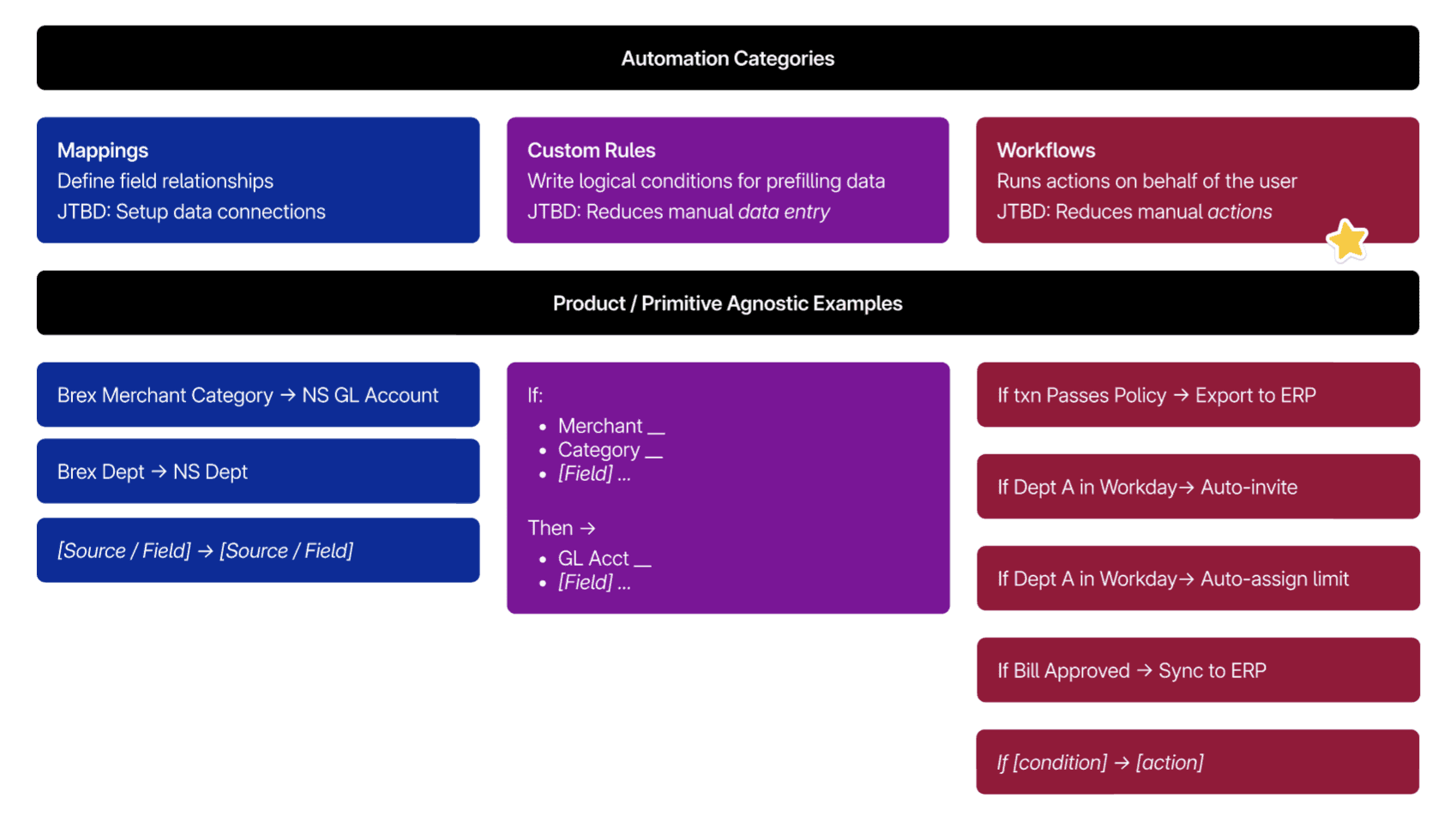 For Brex, the workflows engine we piloted in Accounting later became the blueprint for Banking (auto-deposit), Bill Pay (approval chains), and beyond.
